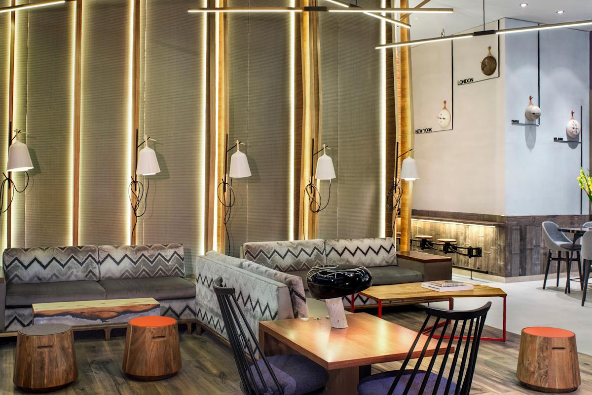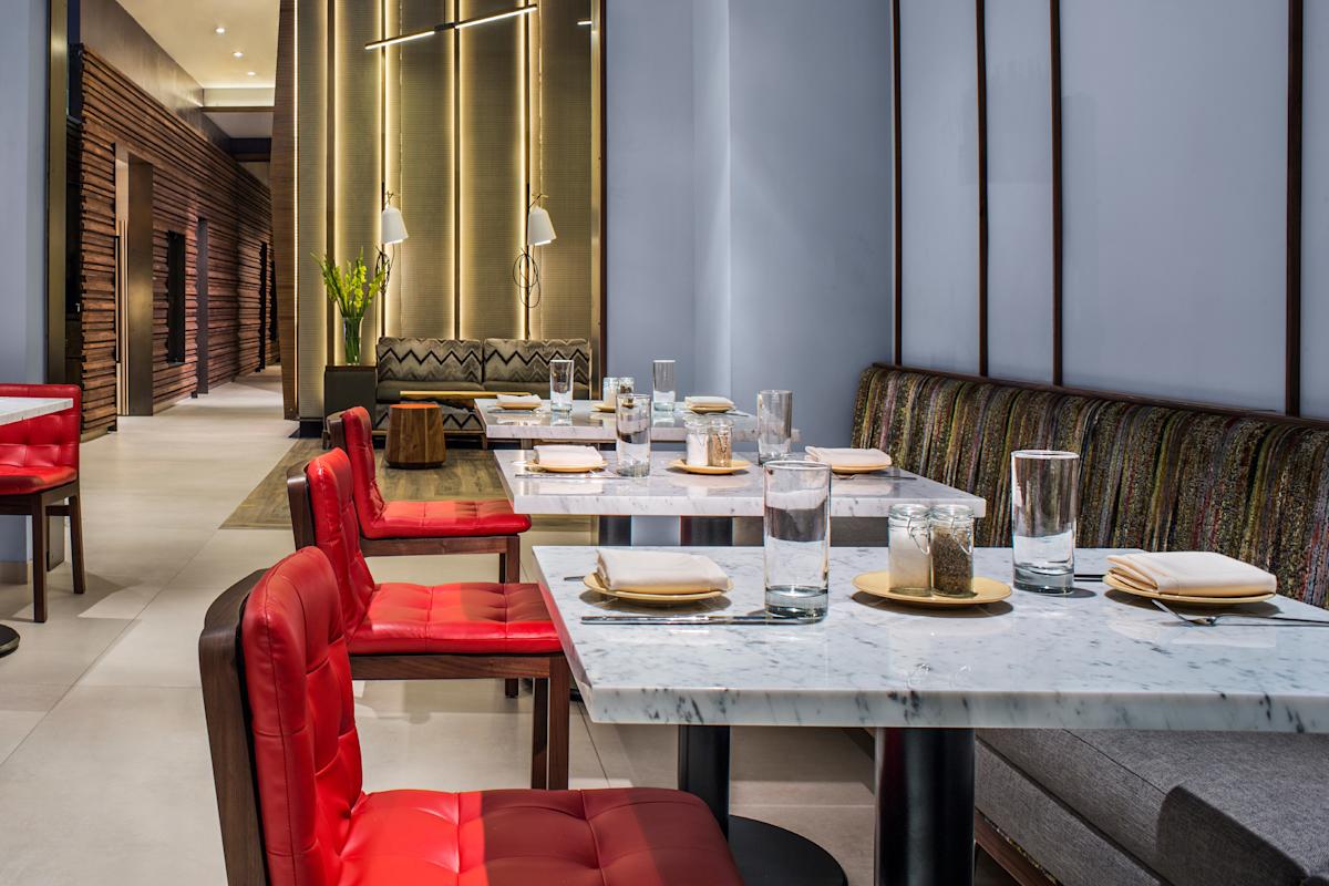 The Den at Hyatt Herald Square New York, headed up by executive chef Gunnar Steden, is an intimate bar and restaurant featuring upscale American bistro cuisine with fresh, seasonal ingredients, along with a dedicated cocktail menu of seasonally inspired drinks and creatively infused spirits. Designed with pops of color and varied textures, the library-inspired lounge features comfortable seating and a bookshelf with media- and fashion-focused literature. The Den also offers a private dining area with modern, mid-century banquettes and quilted chairs.