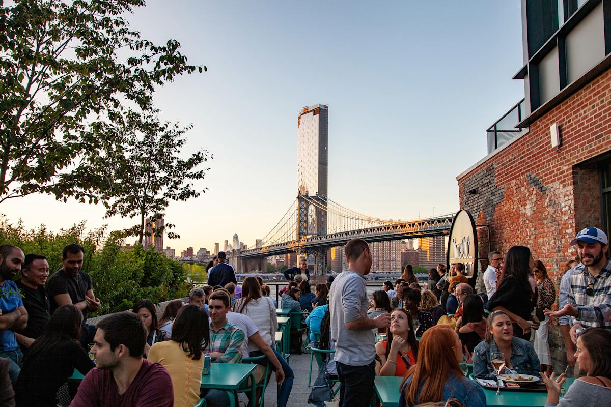 Time Out Market New York is a bi-level waterfront hangout that showcases a curated lineup of local food and drink, plus cultural events. Its 21 restaurants represent "the best of the city under one roof," alongside three bars with specialty cocktails and local beers, wines and spirits. A terrace overlooks the Brooklyn Bridge and Manhattan Bridge. Time Out Market New York also includes a stage that hosts live performances, games and talks.