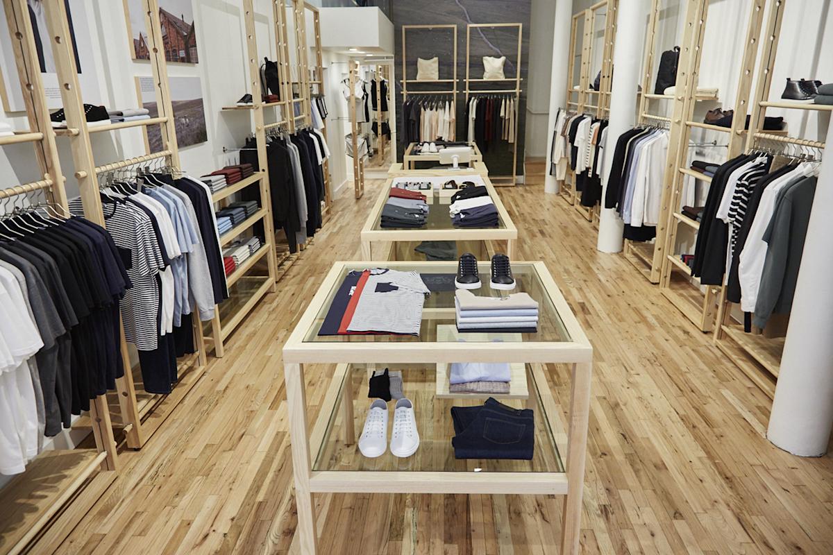 Founded in 1860 in Nottingham, England, Sunspel has a legacy of crafting well-made, luxurious undergarments for men. It’s also known for its signature polos that lend a streamlined yet comfortable look. The brand’s popular Riviera polo style was specially designed for Daniel Craig to sport in Casino Royale, his Bond film debut. These British staples, as well as a women’s collection, have found a home stateside in a new two-story shop, dotted with photos that trace the brand’s history.